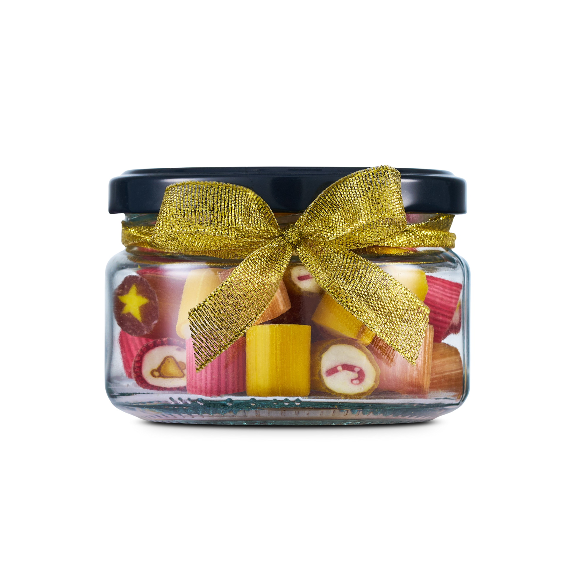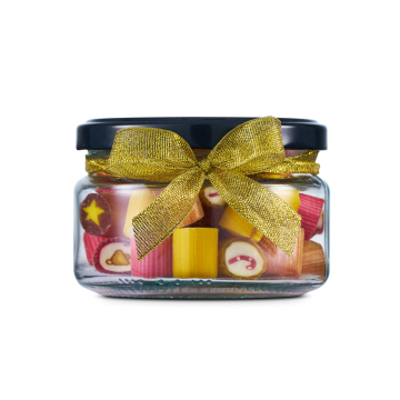 Cukierki Mix Świąteczny o smakach: żurawina (gwiazdka), wiśnia (dzwonek), pomarańcza (laseczka)