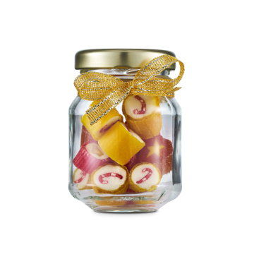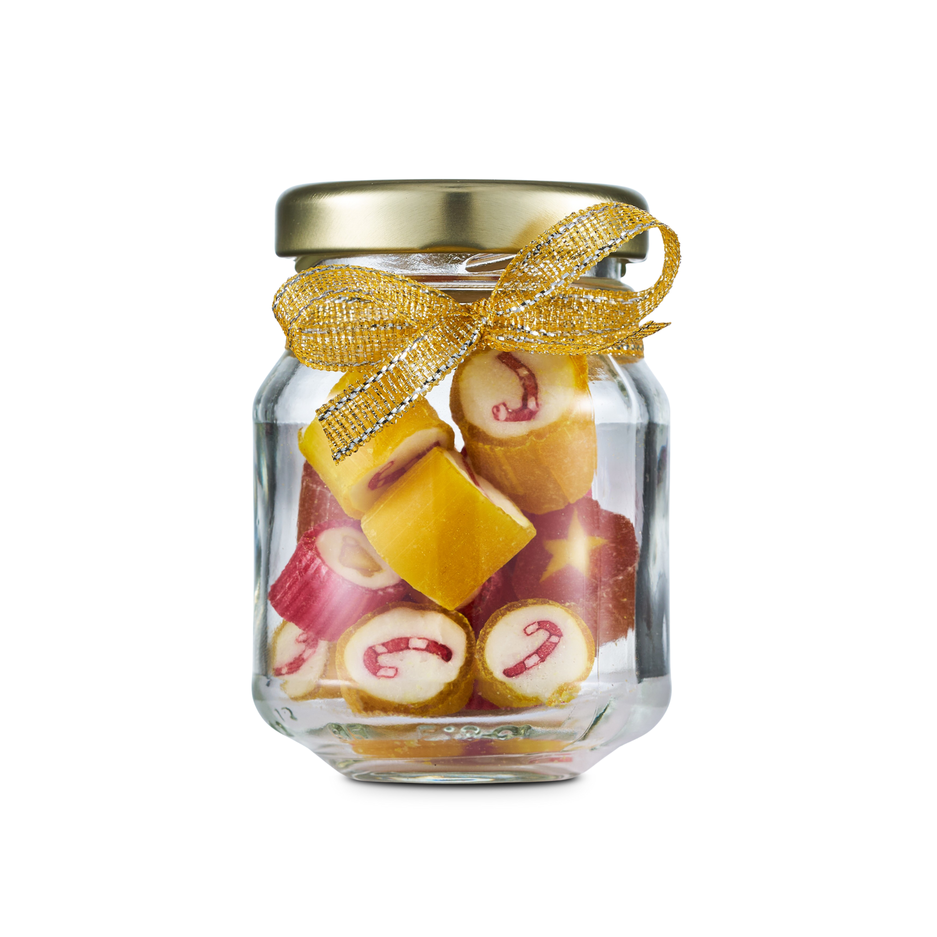 Cukierki Mix Świąteczny o smakach: żurawina (gwiazdka), wiśnia (dzwonek), pomarańcza (laseczka)