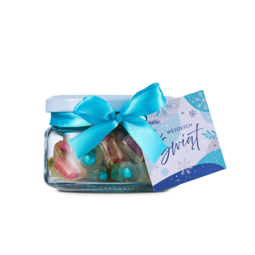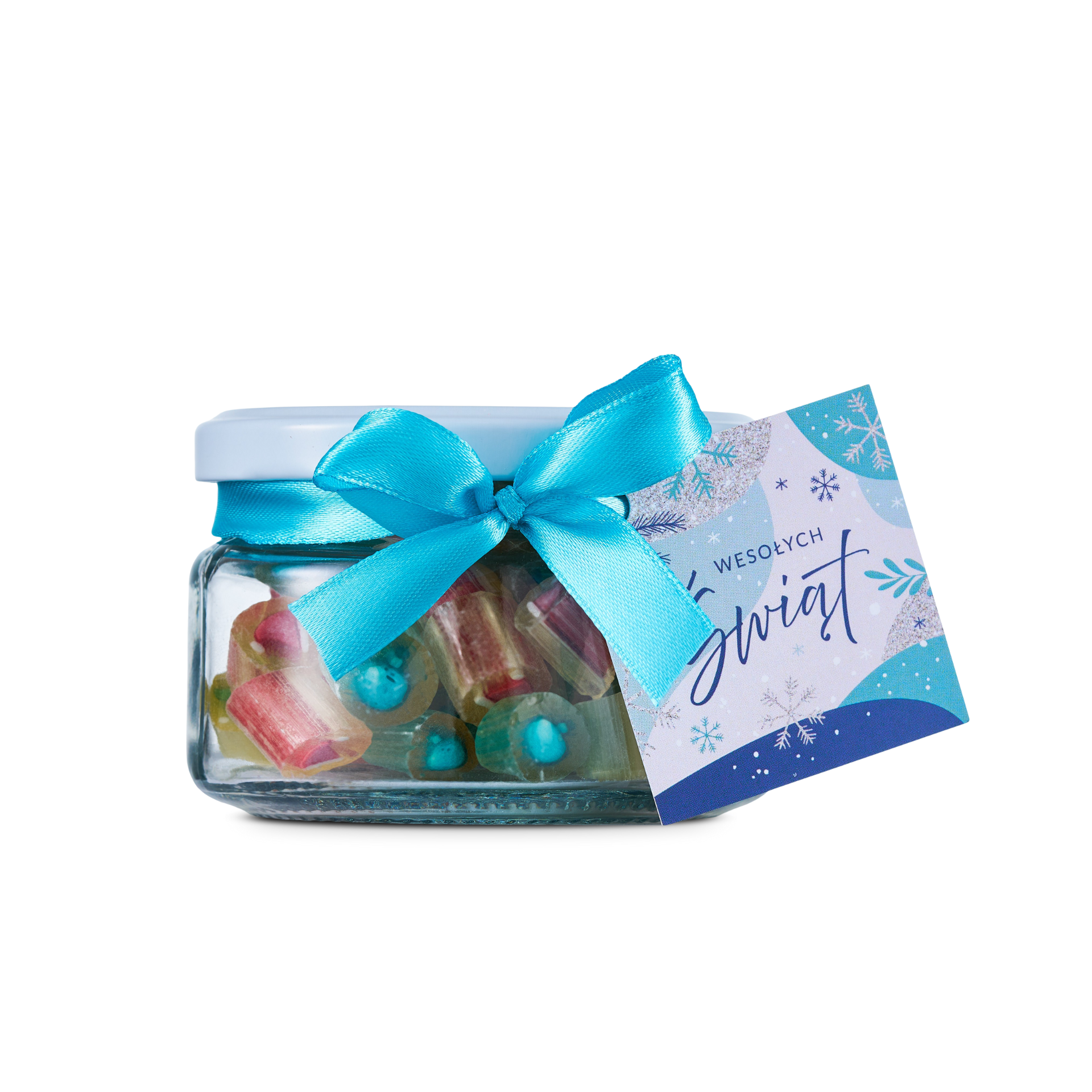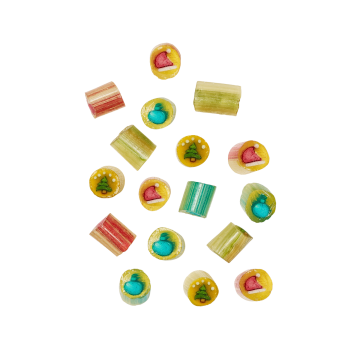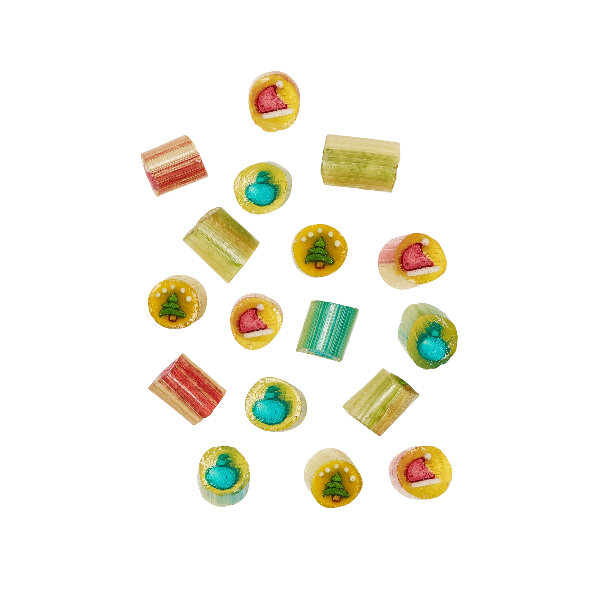 Cukierki Mix Świąteczny o smakach: malina - truskawka (czapka), jabłko - limonka (choinka), jagoda (bombka)