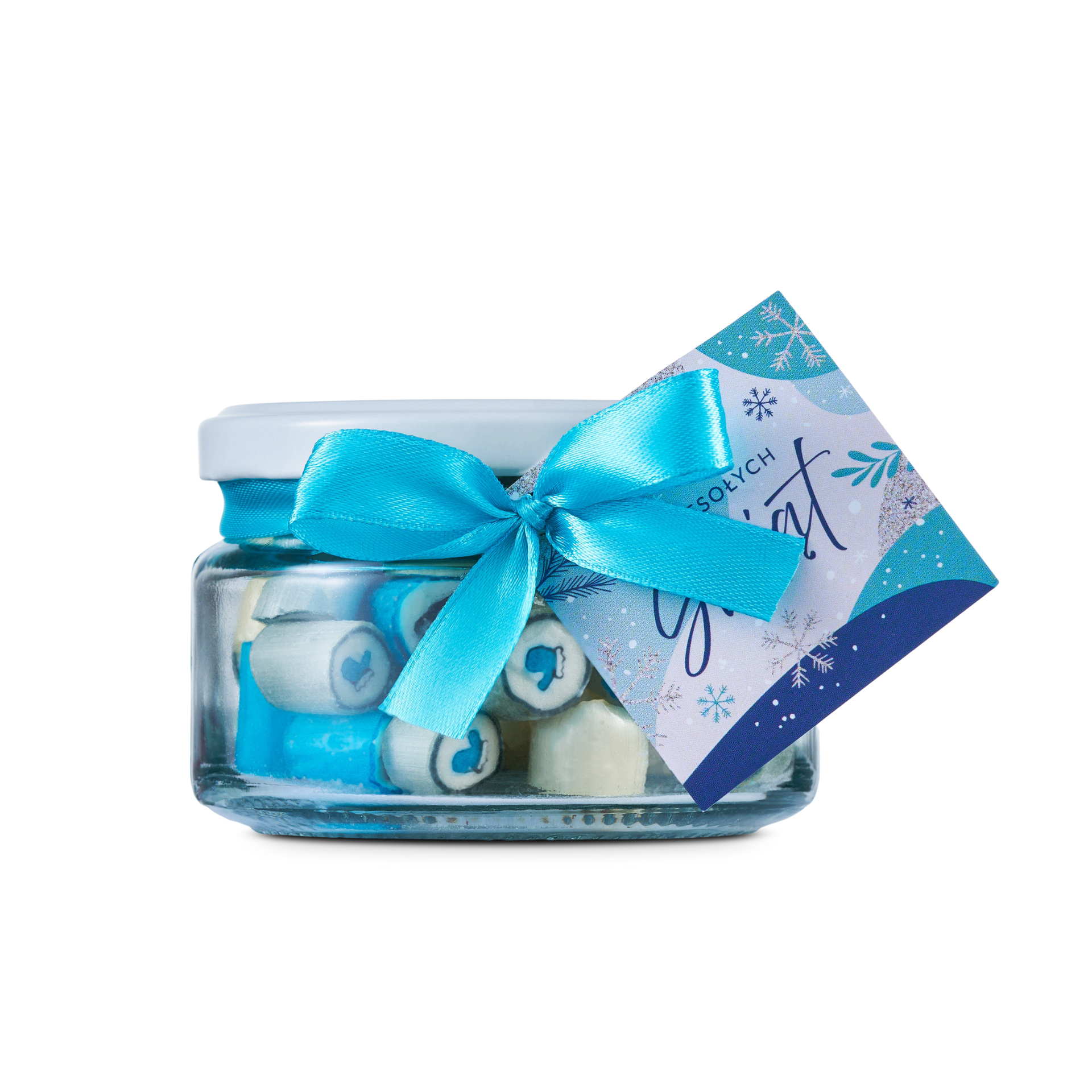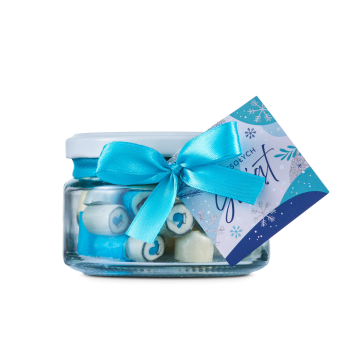 Cukierki Mix Świąteczny o smakach: owoce leśne (bałwanek), ice (rękawiczka), jagoda (łyżwa)