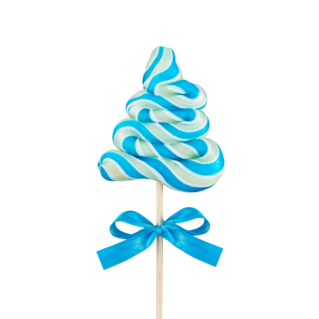 Lizak w kształcie świątecznej choinki z satynową wstążką.