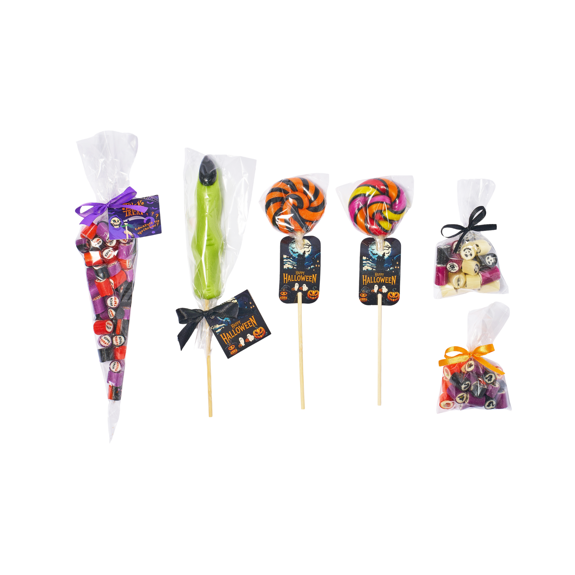 • BESTSELLER – Rożek Halloween - Trick or Treat (100 g) – w środku ukrywa się CUKIEREK: klasyczne cukierki o smaku truskawkowym i wieloowocowym albo PSIKUS: cukierki o smaku czosnku na wampiry, zużytego bandażu i pasty do zębów! Odważysz się spróbować...?